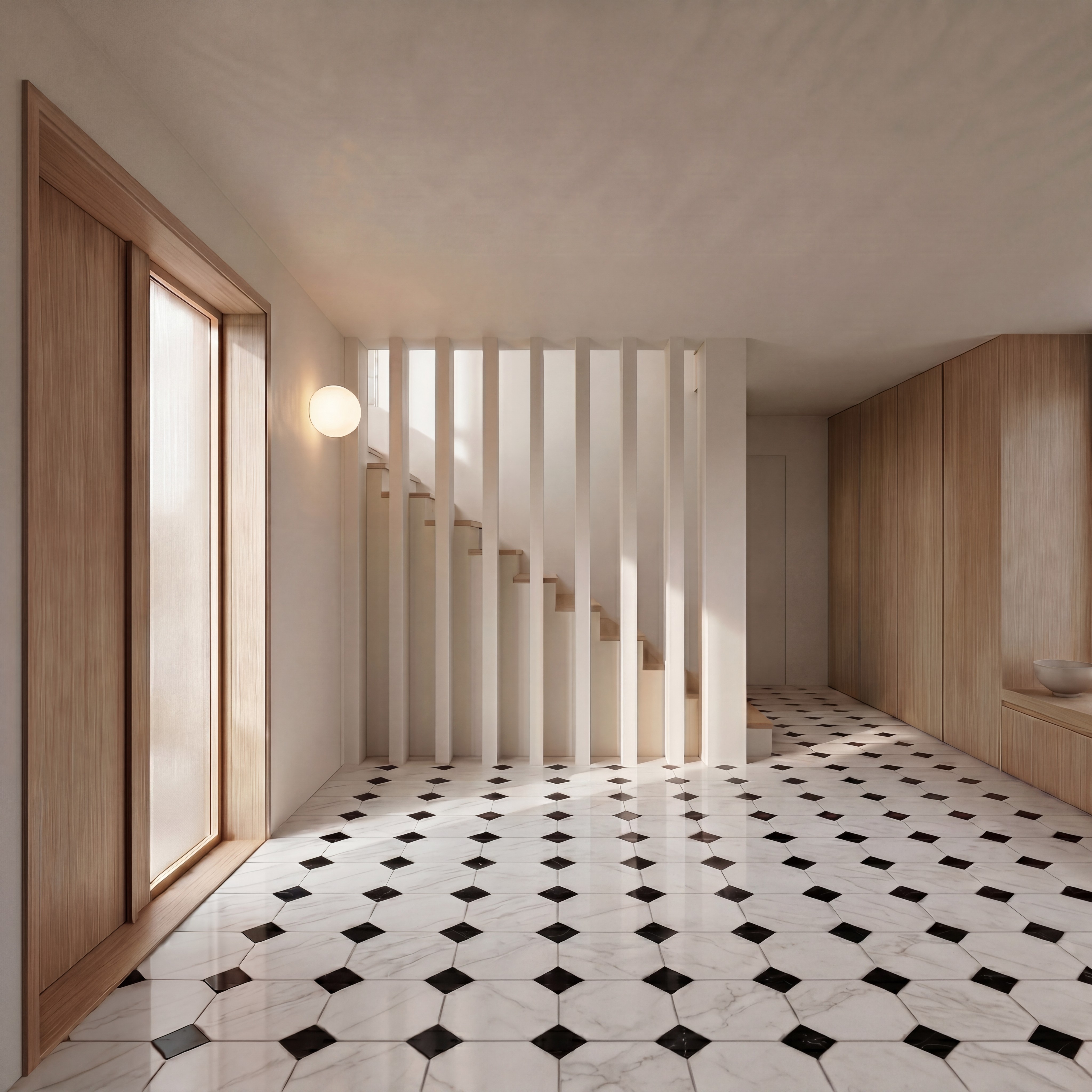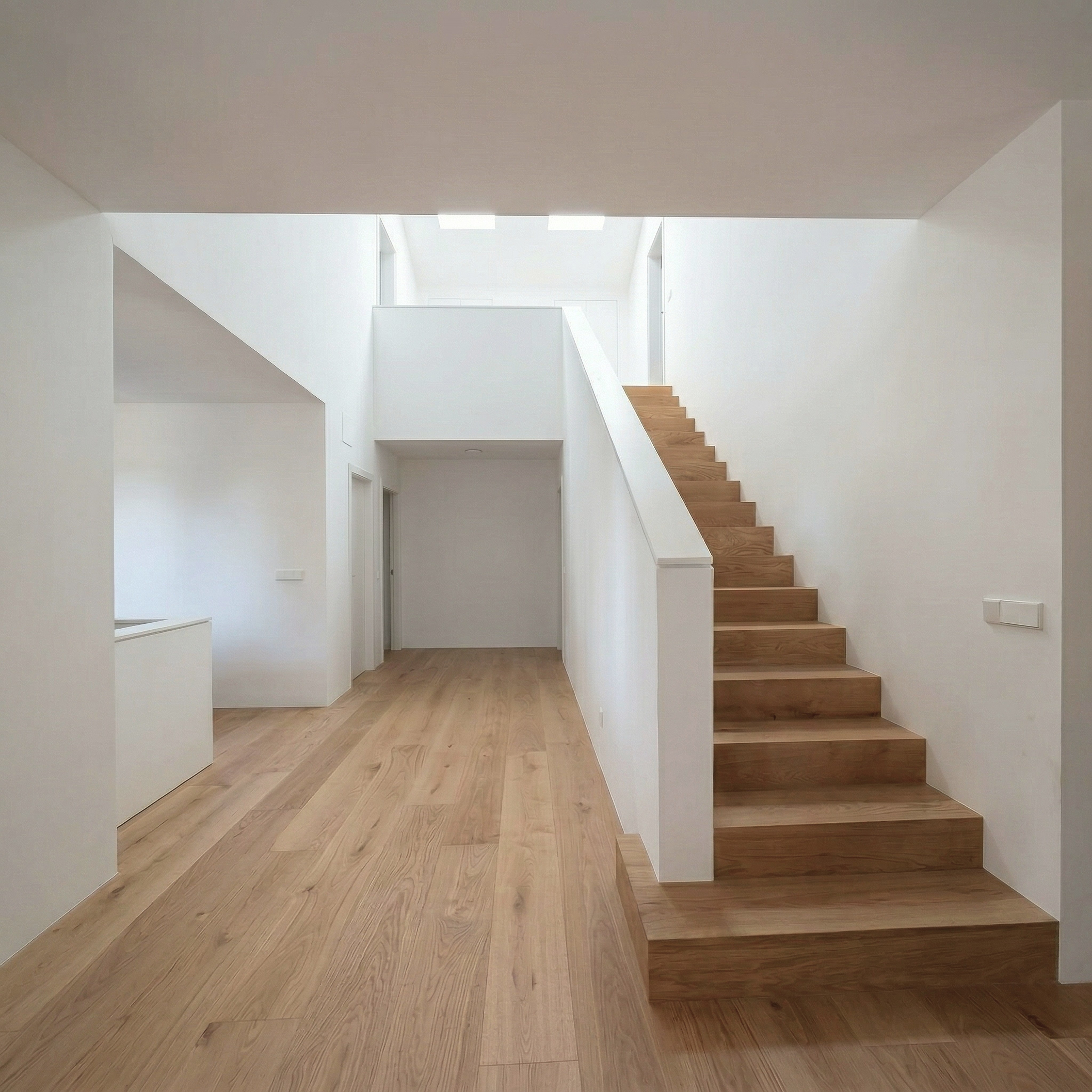 The project was developed around a simple yet structuring intention: to simplify circulation, restore a central role to the heart of the house, and redefine spatial proportions in harmony with the scale of the building.